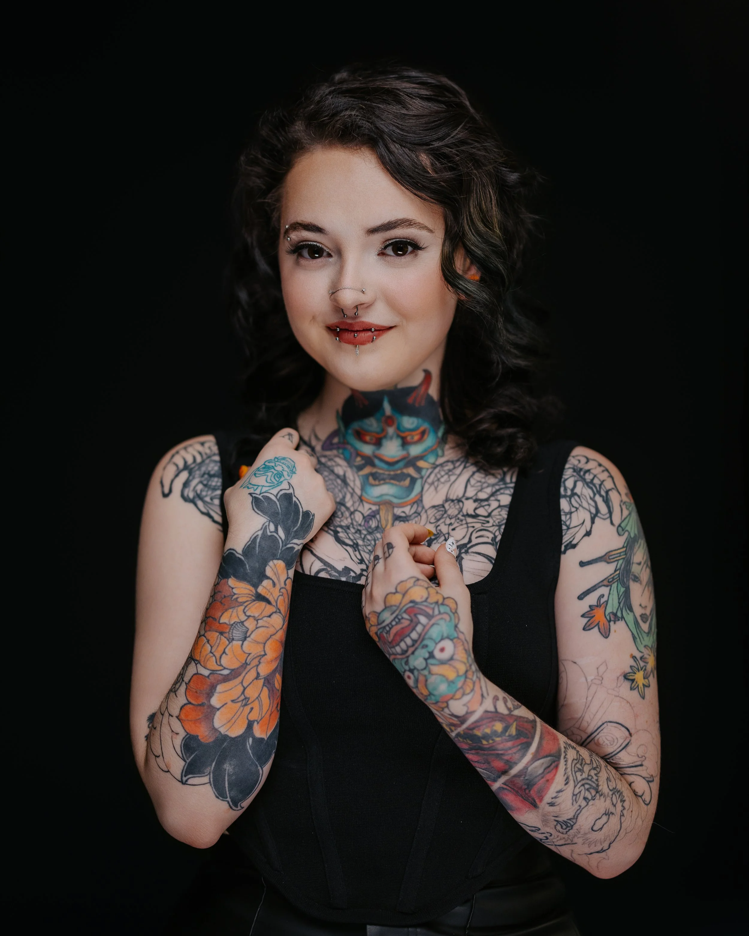 Rabbit has been tattooing since 2022 and has quickly developed a strong reputation for her versatility and creativity. While she enjoys working across multiple styles, her main focus lies in traditional Japanese tattooing and anime-inspired designs. She is particularly passionate about bringing vibrant characters and cultural motifs to life, which has made her work a favorite among fans of Japanese art, anime, and broader pop culture. In addition to these specialties, Rabbit excels in a wide range of illustrative tattoo styles; her portfolio features lettering, blackwork, neotraditional pieces, as well as intricate Celtic and floral designs. Although adept in many areas, she prefers color work over black and grey, as she loves the energy, depth, and boldness that rich color palettes can bring to each tattoo, and she consistently experiments with striking palettes and layered shading to make every piece stand out.